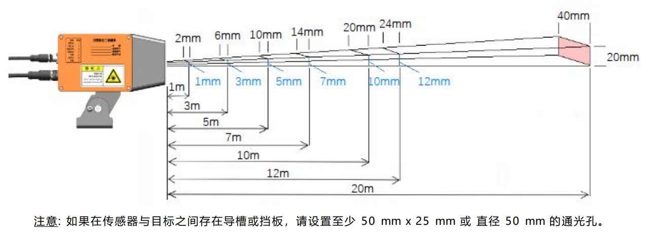 - 红色指示激光器用于瞄准目标,通电后红光将持续点亮20分钟,然后自动关闭,可以通过调试口重新点亮红光