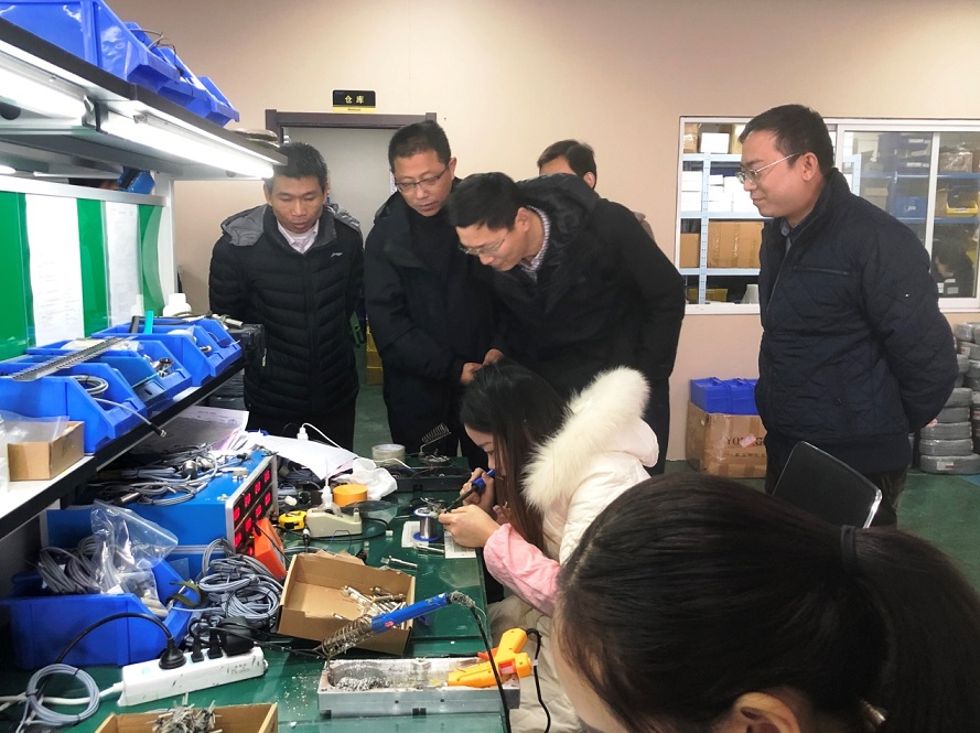 图2-4 总经理郑斌与南京工程学院领导参观公司展厅、车间、研发部等