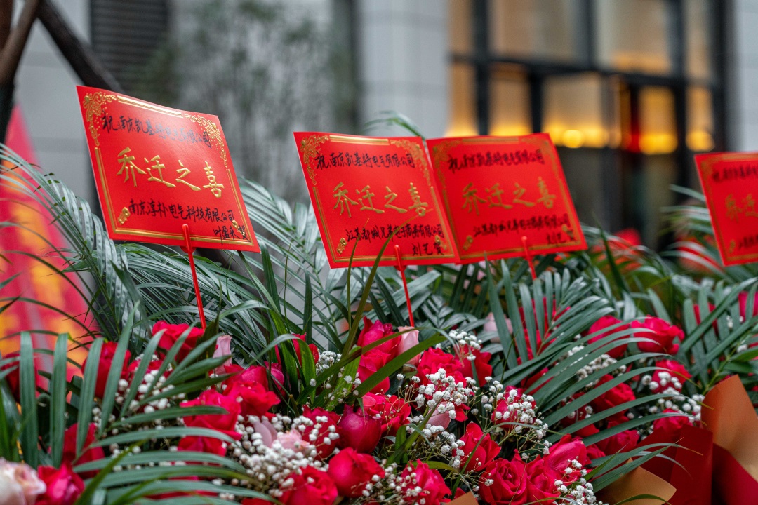 在岁序更替之时,迎来了又一重要时刻。2023年1月14日上午,南京凯基特电气有限公司在申智滙谷产业园隆重举行乔迁庆典。总经理郑斌、专家领导、商会领导、党派领导、亲朋好友、以及凯基特所有同仁应邀出席共同见证了这一重要时刻。衷心祝愿公司乔迁吉祥,业务蒸蒸日上! 看今朝,我们踌躇满志;展未来,我们豪情满怀。在公司乔迁之际,非常感谢长期以来对我们给予支持和肯定的各级领导及所有的合作伙伴,愿我们共同进步,再创辉煌。 迎接宾朋 为来宾们精心准备了红毯走秀和签字仪式,厅内准备了精致甜品、乔迁蛋糕、精美礼品。